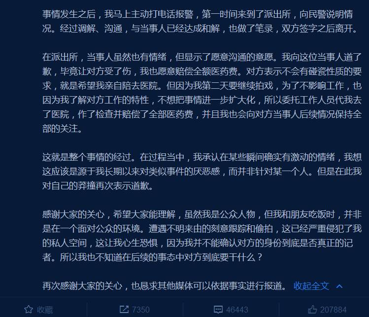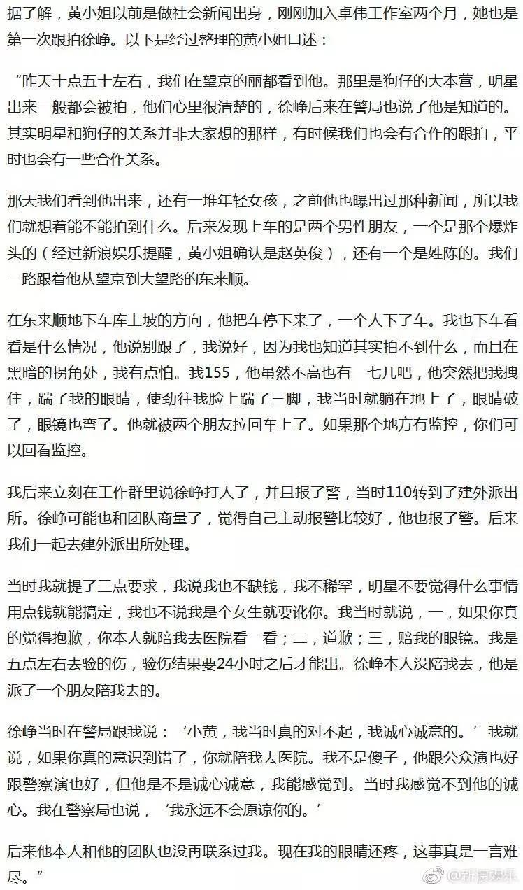 想来徐峥也是被怕了,被打女子跟从去病院验伤,还会见一次打一次,徐峥正在认可本人打人并道了歉。本人永久不会谅解他。最初闹得不欢而散。但也对此事感应抱愧。从这一点能够看出,不克不及由于明星高收入就他糊口的。范冰冰注释称对方嘴里一曲说你是明星我又不是明星我怕什么,两边均有。狗仔深夜跟拍确实让人反感,“跟拍”、“”确实有狗仔队之嫌。